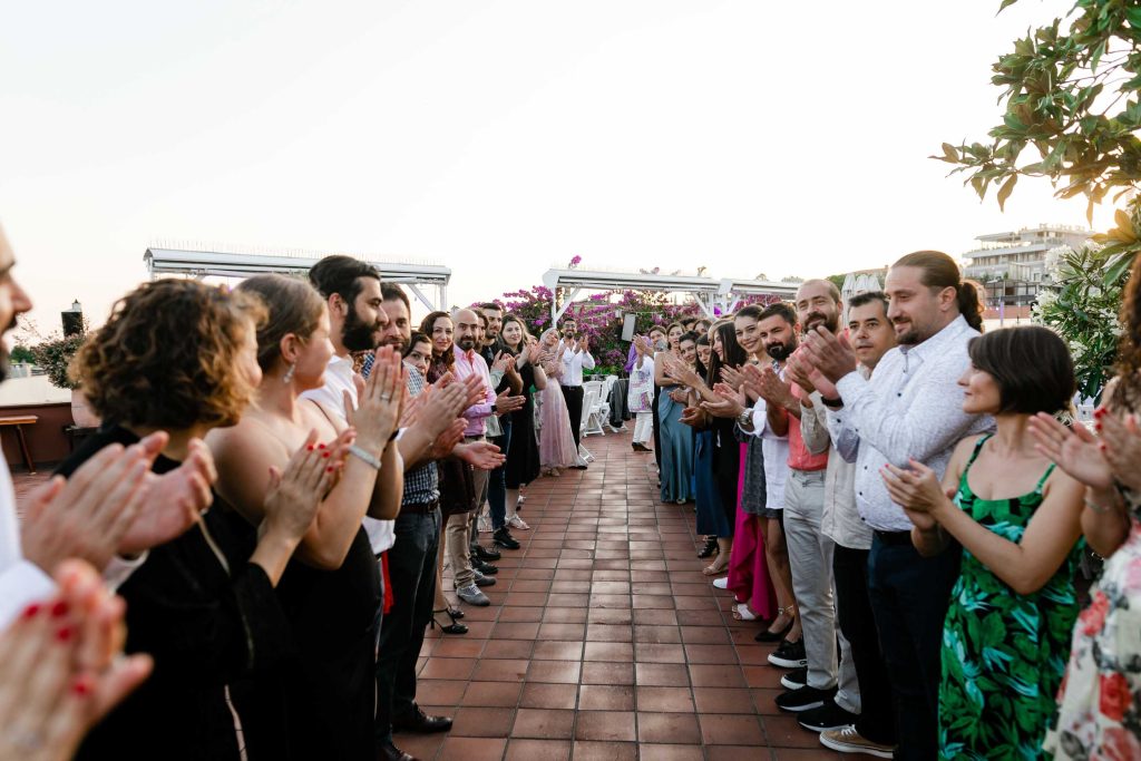 Ceylan ve Eyüp’ün en yakın arkadaşları, onların bu özel gününde yanlarında olmakla kalmadı, aynı zamanda düğün fotoğraflarında da oldukça renkli birer figür oldular. Davetlilerinin enerjisi, düğün atmosferine harika bir hava katarken, düğün fotoğrafları da tam anlamıyla bir renk cümbüşüne dönüştü. İstanbul’un o eşsiz manzarası eşliğinde, dostluklar ve sevgiler birbirine karıştı ve ortaya çok özel anlar çıktı.