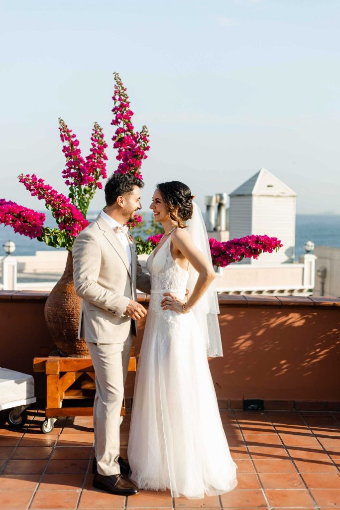 İstanbul’un tarihi dokusuyla iç içe bir atmosferde düğün hayali kuran çiftler için Armada Teras, adeta bir cennet gibi… Boğaz manzarası, Sultanahmet Camii ve Ayasofya’nın eşsiz görüntüsüyle bu mekan, düğün fotoğrafları için mükemmel bir arka plan sunuyor. Özellikle 80’ler ve 90’lar estetiğiyle, mor çiçekler ve turuncu duvarlarla harmanlanan görsel şölen, düğün gününü bir masala dönüştürüyor. Ceylan ve Eyüp çifti için de bu eşsiz atmosferde çekilen düğün fotoğrafları, zarafeti ve enerjiyi birleştirerek unutulmaz anlar oluşturdu.